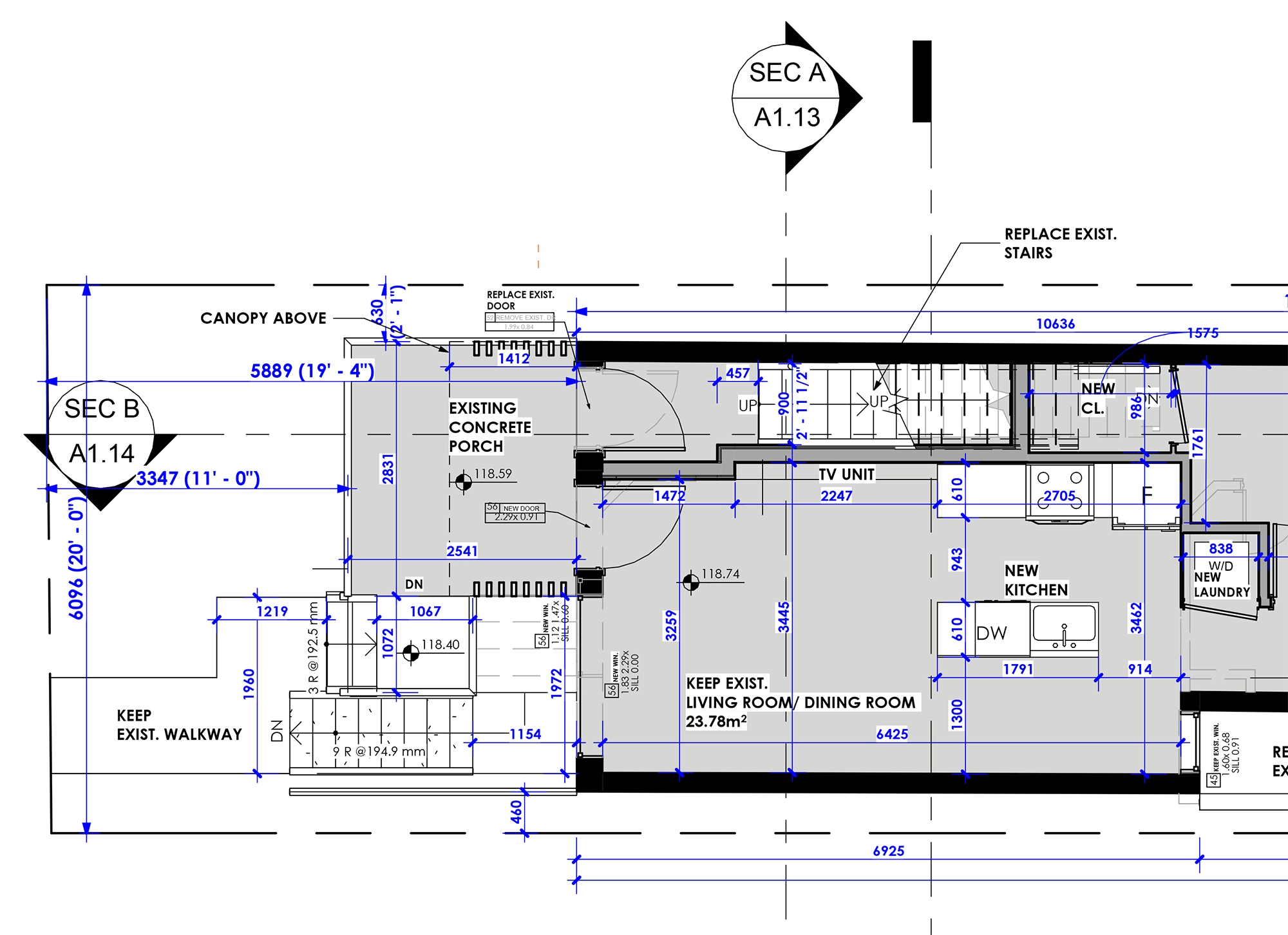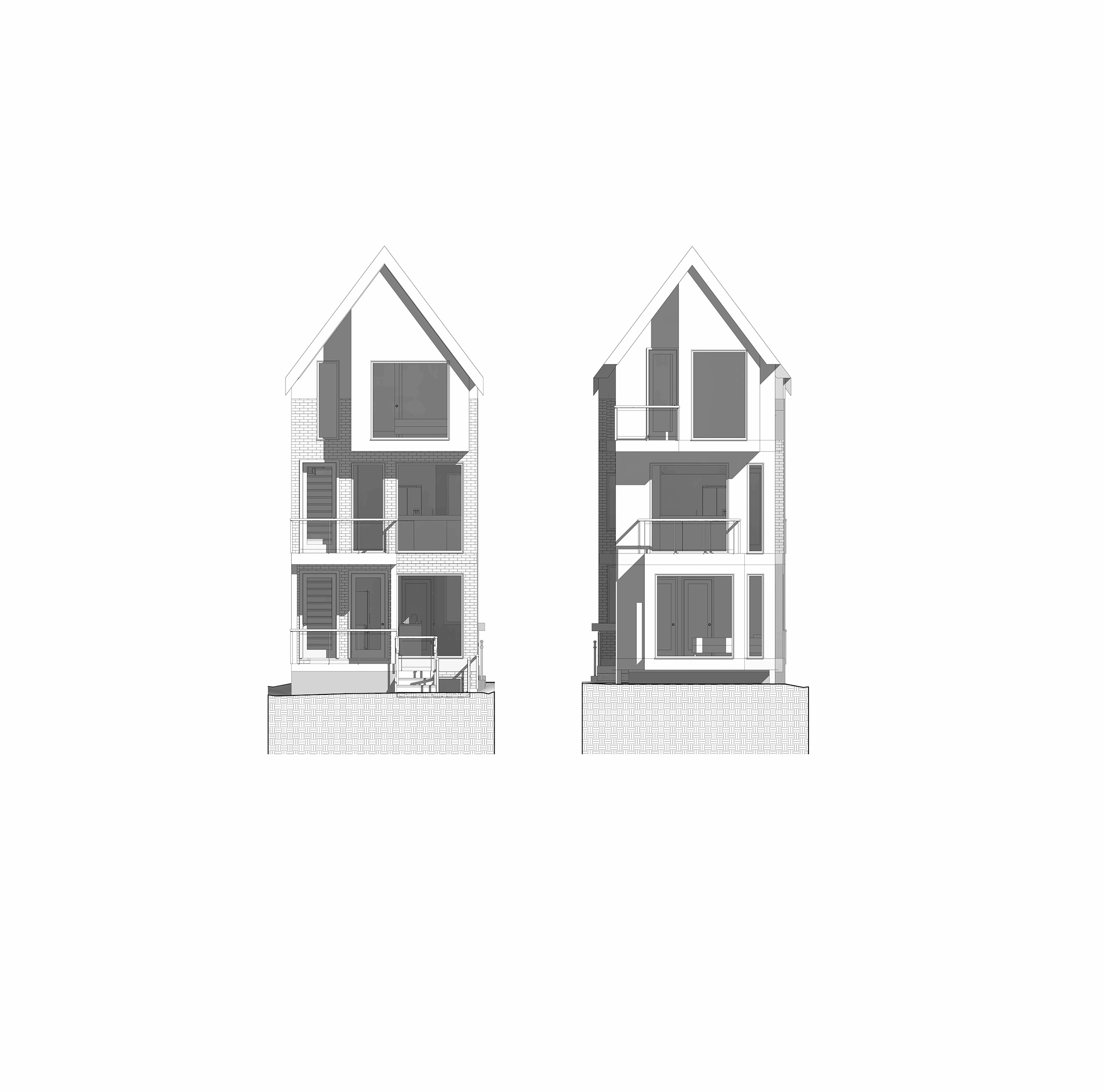 In this project, we converted a two-storey single-family dwelling on Dufferin Street into a fourplex and a laneway suite by adding a third floor and a rear addition.